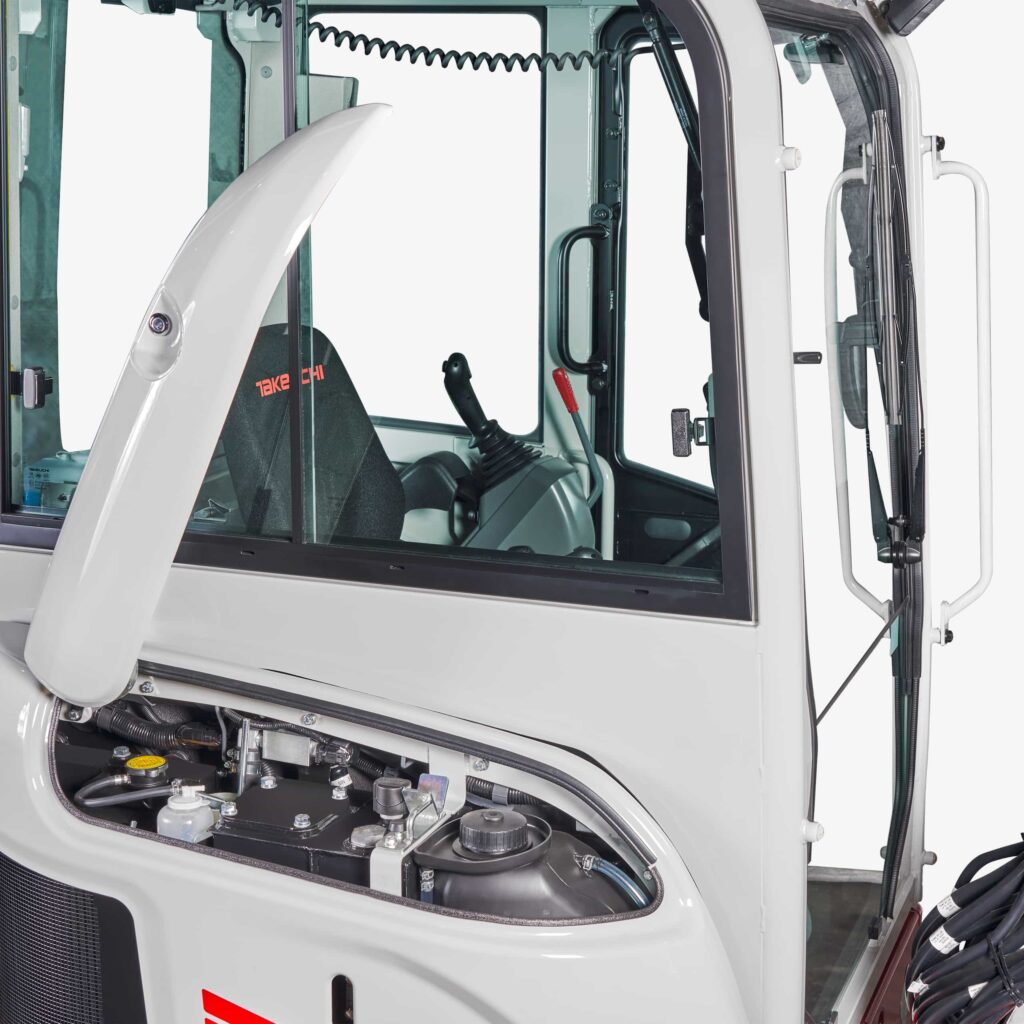 • komfortní kabina ROPS/FOPS s rádiem, topením a úložným prostorem