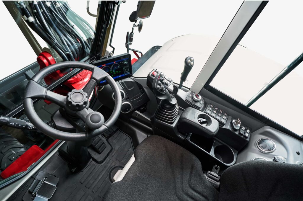 - komfortní kabina ROPS/FOPS s rádiem, topením a úložným prostorem